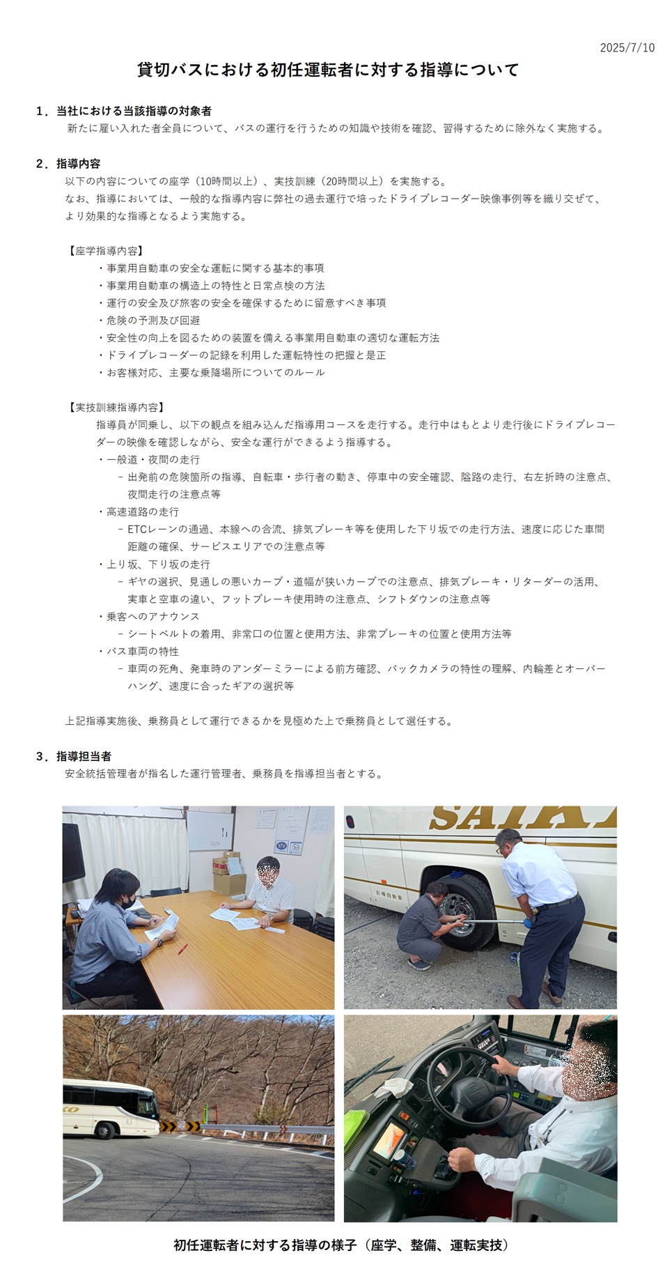 当社では、過去経験を問わず自社運行におけるドライブレコーダーや各種指導用の映像を活用して安全運行最優先の指導に徹底しております。