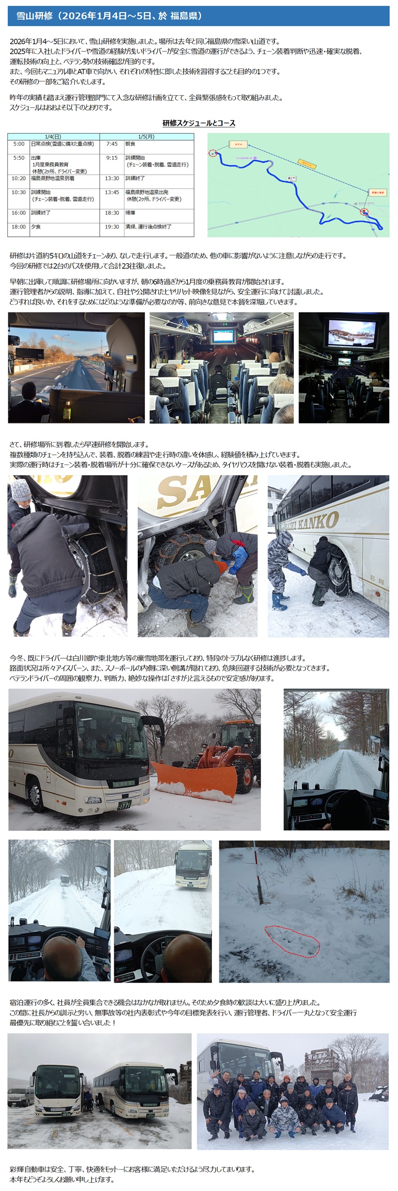 昨年同様、福島県に実施しました雪山研修の様子をご紹介いたします。